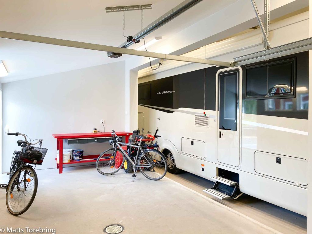 Det känns så skönt, ända långt in i hjärtat och jag sa det flera gånger på resan, vad skönt att bussen står inne under tak. Nu är det ombyte i garagen, bussen står inne och lillbilen rullar.