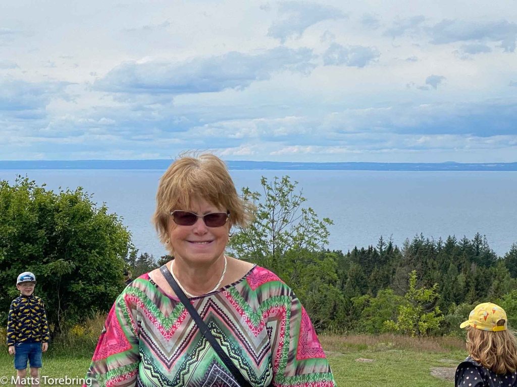 Idag var det rena folkvandringen upp till toppen. Parkeringen var fylld till sista plats. Här uppe på hjässan, kunde vi se rakt över Vättern, till Hjo kyrka, på andra sidan vattnet.