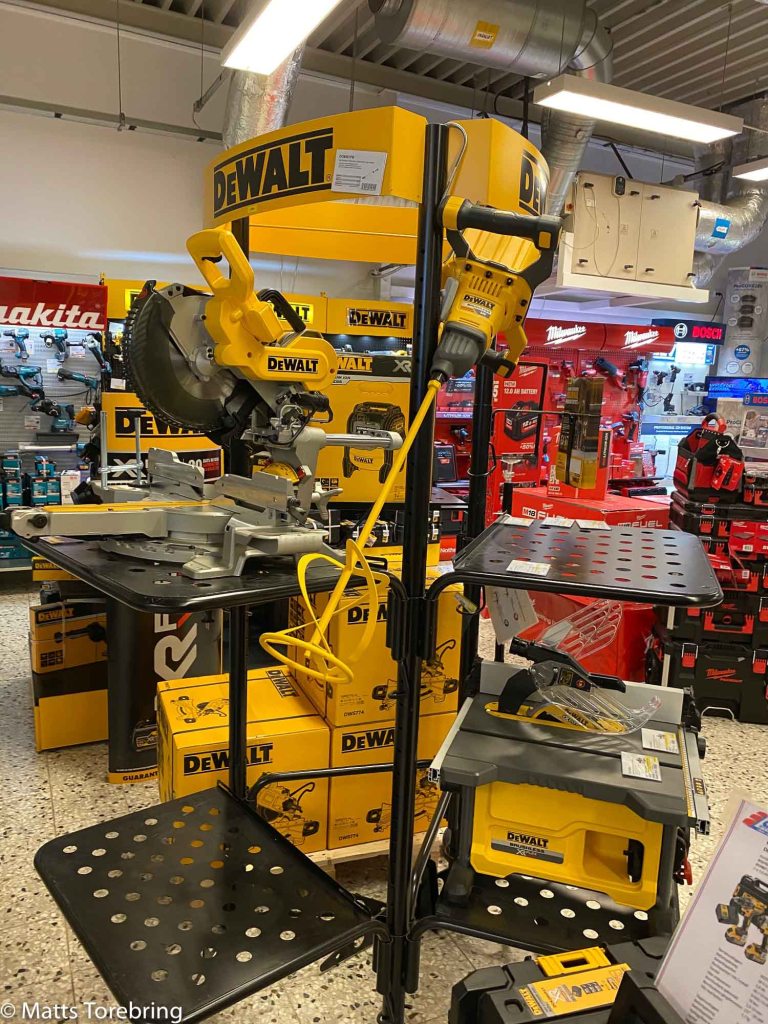 Vad skönt att gå förbi denna monter. Matts tror att han har byggt färdigt nu. Inget som lockar och drar längre. Jag behöver ingen betongvisp, ingen kap- eller klyvsåg. Jag inhandlade däremot upphängning, till slangar och kablar i nya garagen.