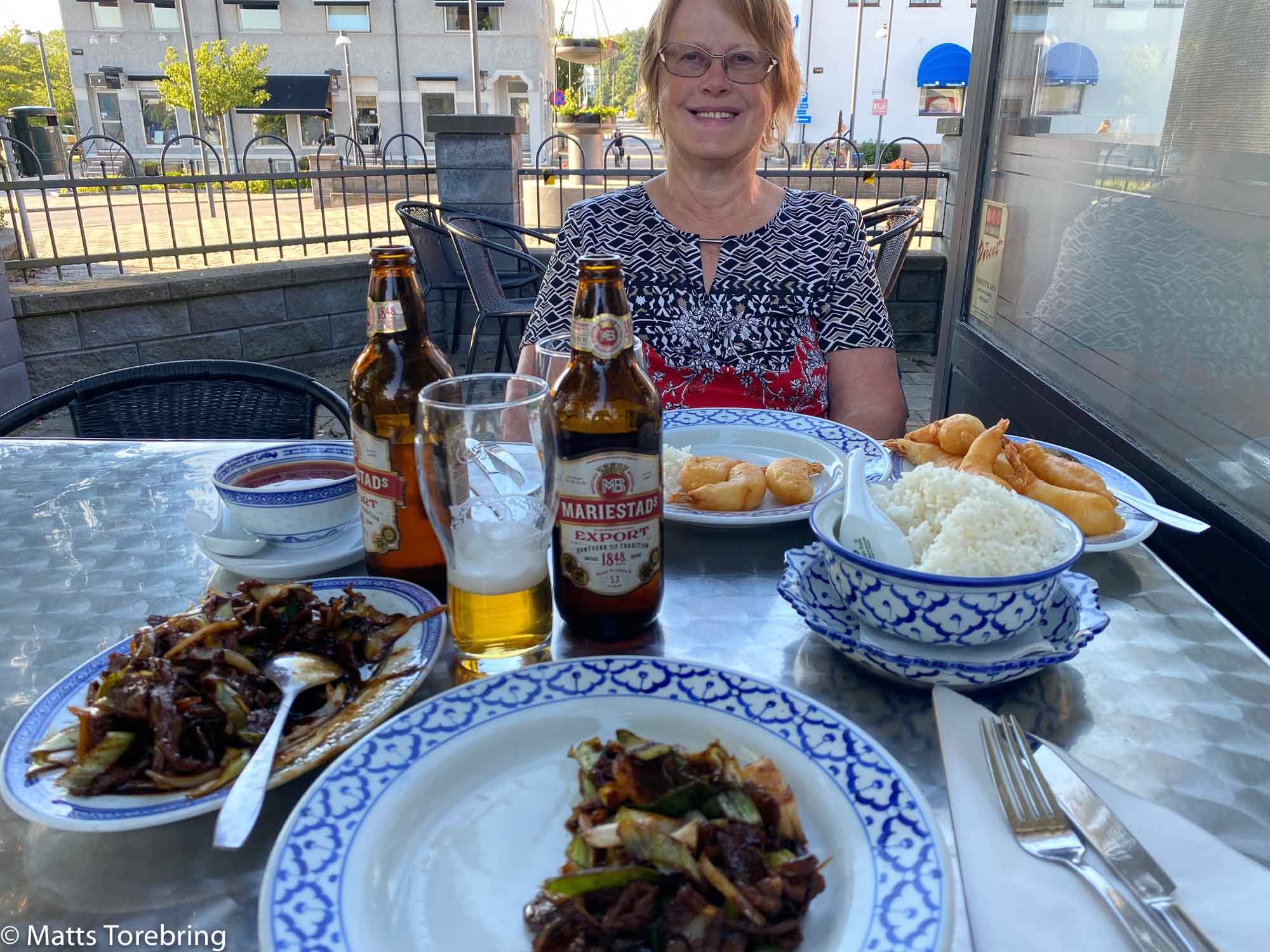 Intill Hemköp fanns en öppen restaurang. Riktigt gott var det och så skönt att sitta ute i skuggan av träden.