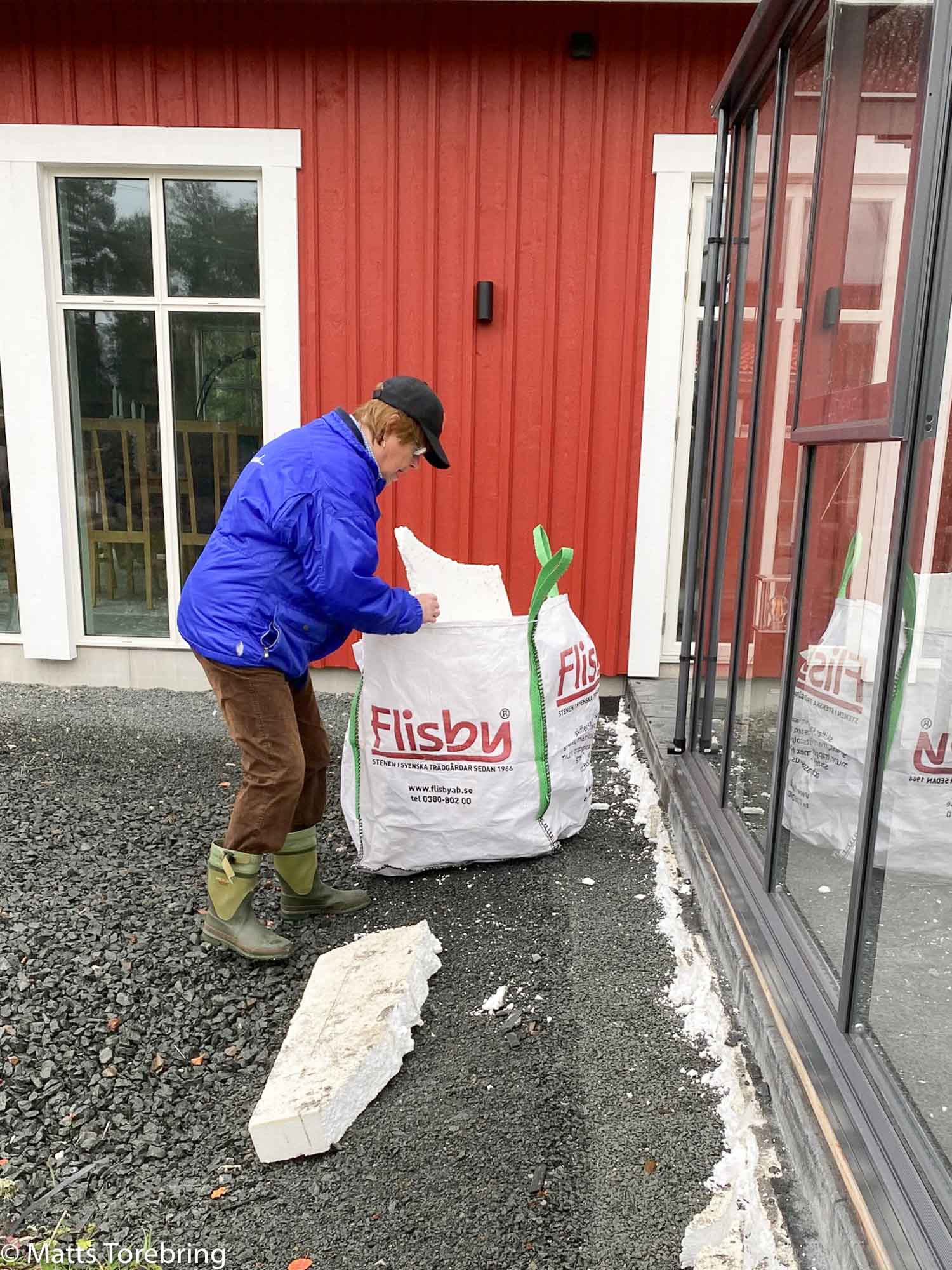 Idag har Birgitta & jag tagit bort överbliven isolering under altanerna, som vi göt på försommaren. Nu skall fyllas på med matjord i stället. Jag hade hoppats att markarbetet skulle starta på måndag, men icke. Vi får vänta till mitten av vecka 42. Det behövs en stor bandmaskin och den var inte ledig tidigare.
