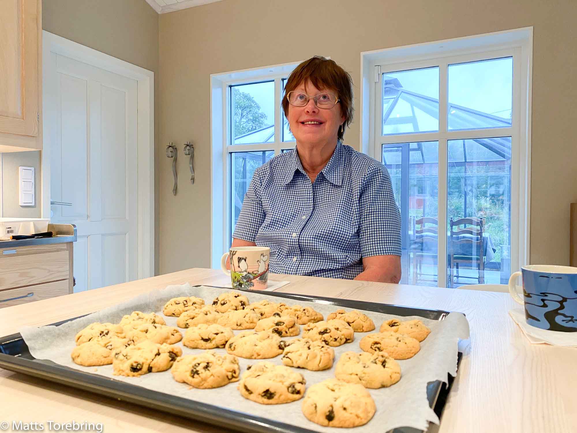 Först nu i sitt nya drömkök, har Birgitta börjat baka det godaste fruktbröd, mjuk sockerkaka, mjuk pepparkaka, vetelängder och idag russinkakor. Eftersom jag älskar russin i nästan all mat, lyfte jag fram hela plåten till kaffe på maten. Jag älskar min Birgitta, aldrig någonsin under alla år, har hon sagt att jag jobbat för mycket, detta trots oftast dubbla arbetsdagar i yngre år.
