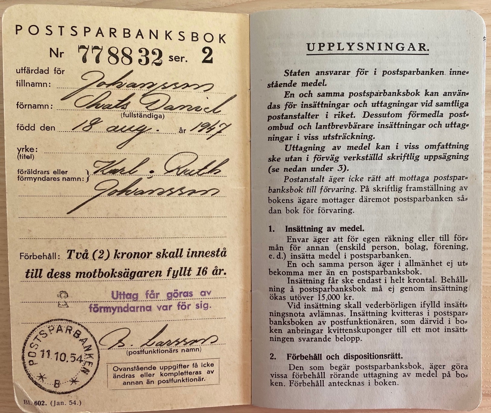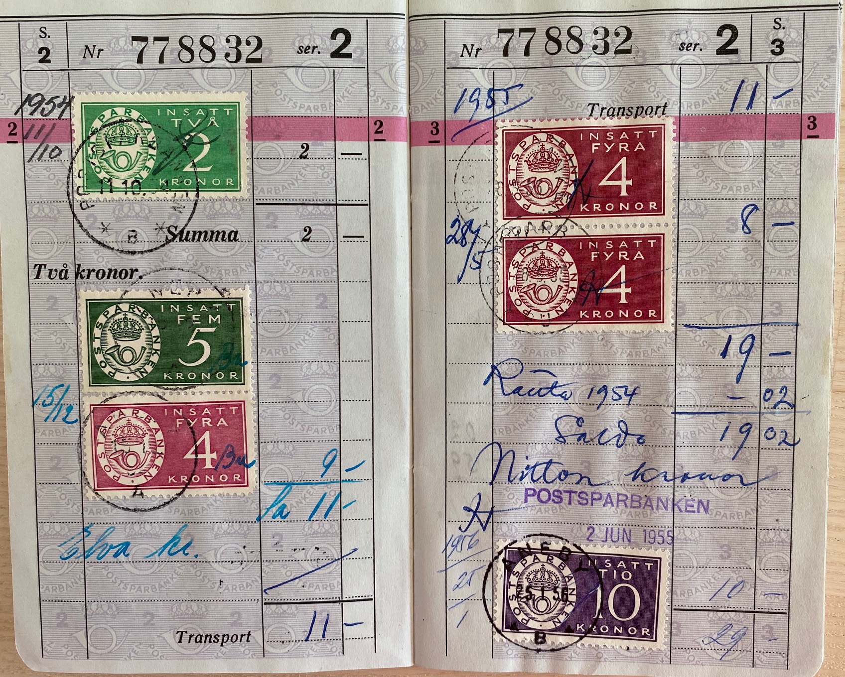 Postsparbanksbok är vi nog många som har haft på 50 – 60 talet.