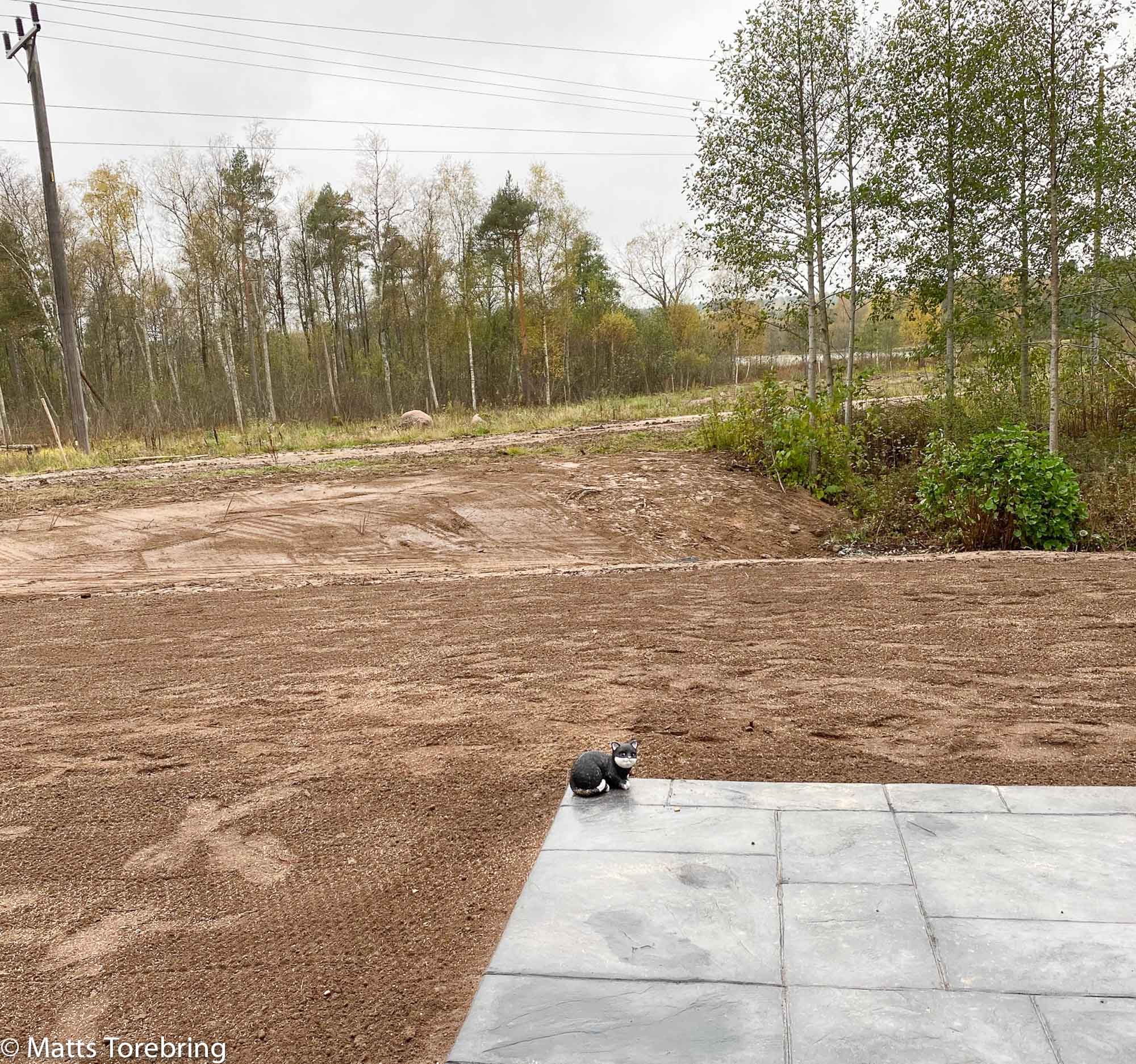 Vi behövde vackert väder, för att klara av sådden och vältningen av gräsmattan. Vi fick idel solskensdagar och bara sista timmarna kom lite duggregn. Vidare är jag imponerad av noggrannheten proffset i grävmaskinen. Det är inte bara en tomtgräns, det är så snyggt avsläntat utanför tomtgränsen.