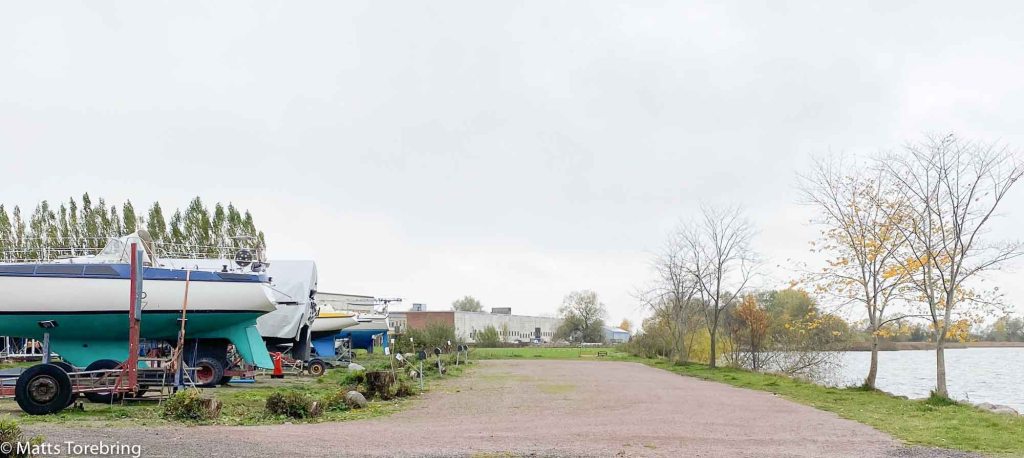 Hoppsan, vad tiden går, redan två och ett halvt år, sedan vi var här sist. Första gången för HERDEN också. Vi brukar gilla att backa in här mellan träden, som fanns tidigare. Nu är det en massa stubbar kvar. Vi kom när det var kolsvart ute och parkerade bara längs med, så vi fick ström.