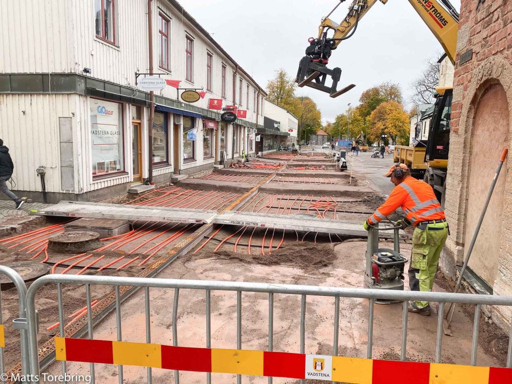 Här var så fina plattor lagda tidigare. Varför lägga in ”Golvvärme” i gatan? Det fattar jag inte, tala gärna om varför.