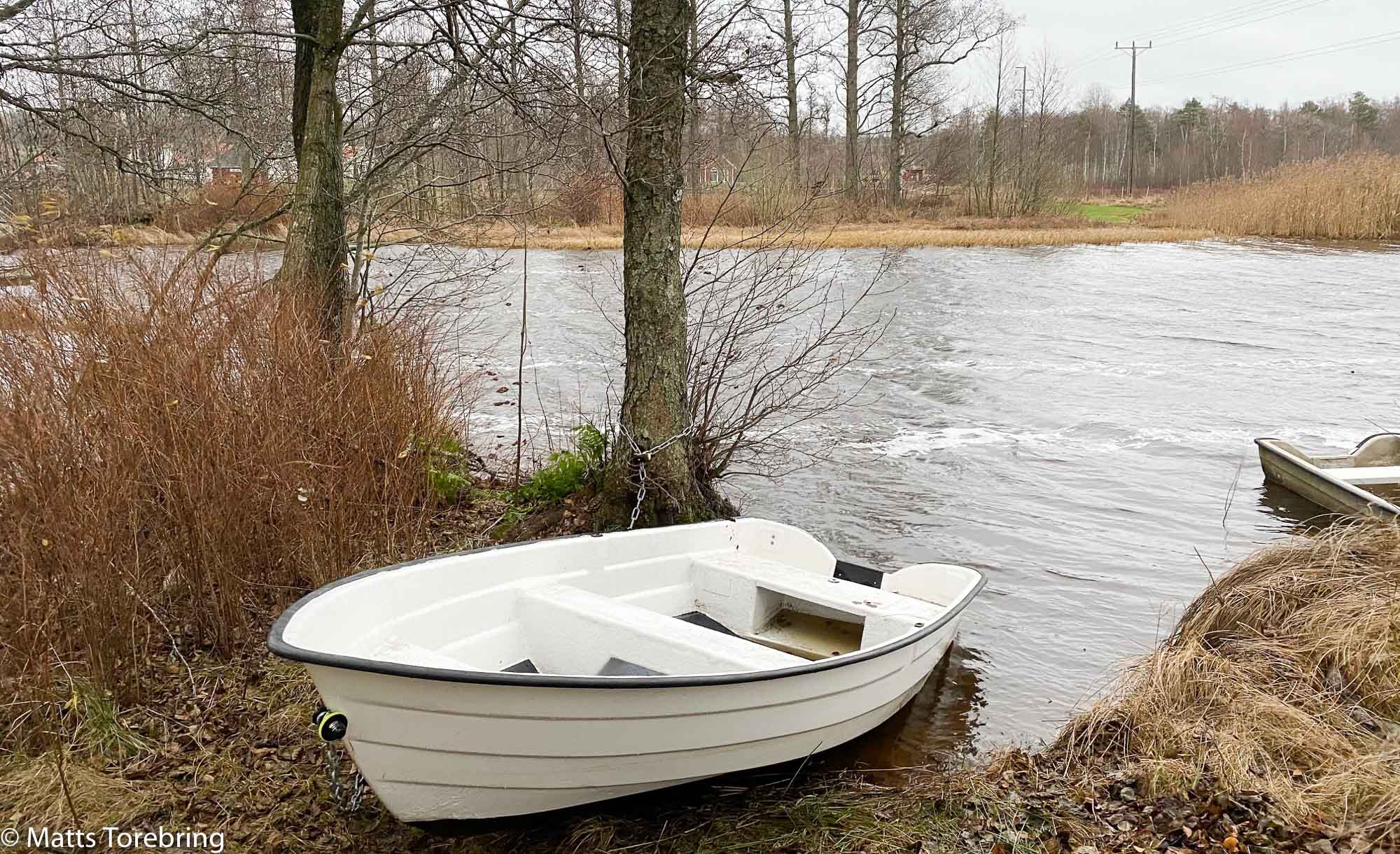 Det var förra lördagskvällen, klockan var efter sjutton tiden på kvällen. Då ringde Linus… Farfar kom och hjälp oss, vi får inte upp båten. Jag vill så gärna, men inte nu i mörker och regn. Jag kommer lördag morgon när det ljusnat och så blev det. För att komma till andra sidan av vår badvik, måste man köra runt ett bra stycke, genom en kolsvart skogsdunge, det blåser, det regnar och är kallt ute.