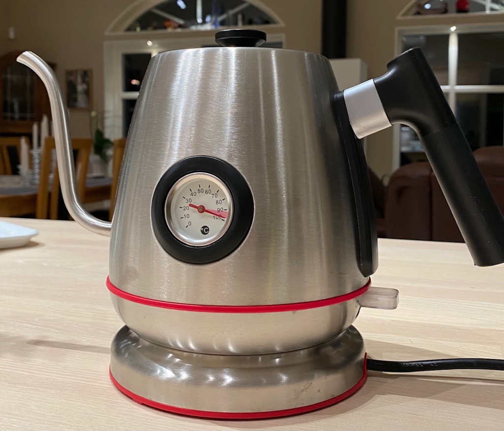 När vi flyttade in på Framtidsvägen, stämde den förra Philips vattenkokaren som vi då hade, inte ihop med färgsättningen i vårt nya hem. Vi köpte en Eva Solo som var jättedyr. Jag tyckte det var ”Dinkey Toys” och lämnade tillbaka den på grund av flera orsaker. I stället köpte vi denna Bonamat vattenkokare. Den bästa vi någonsin haft. En sked honung på kvällen och inte för varmt vatten, temperaturen visas klart och tydligt. Fantastiskt bra. Dessutom så fint designad. Detta är verkligen ett julklappstips!