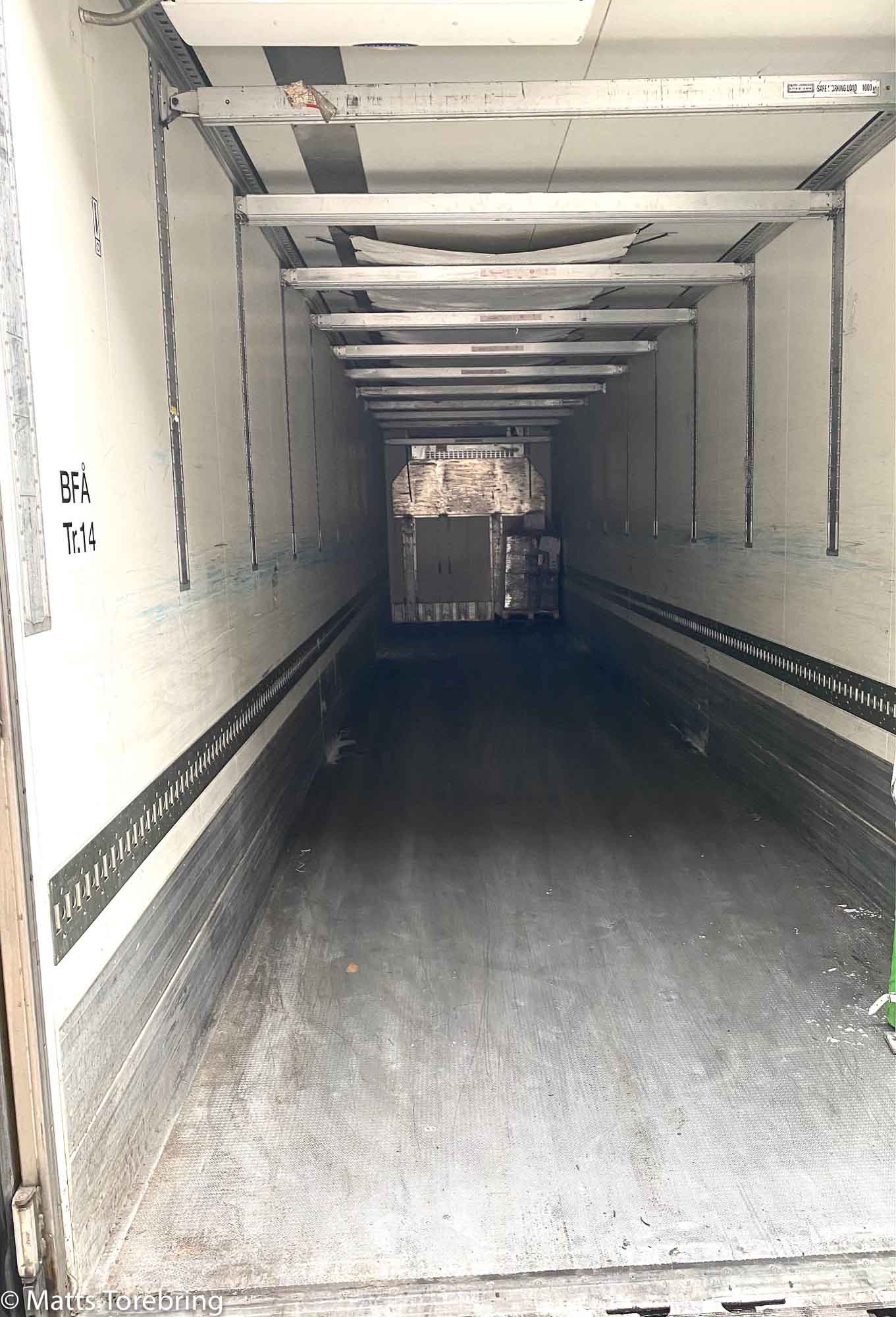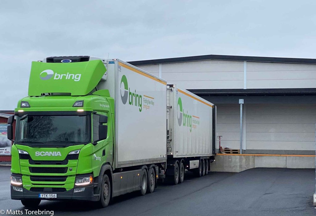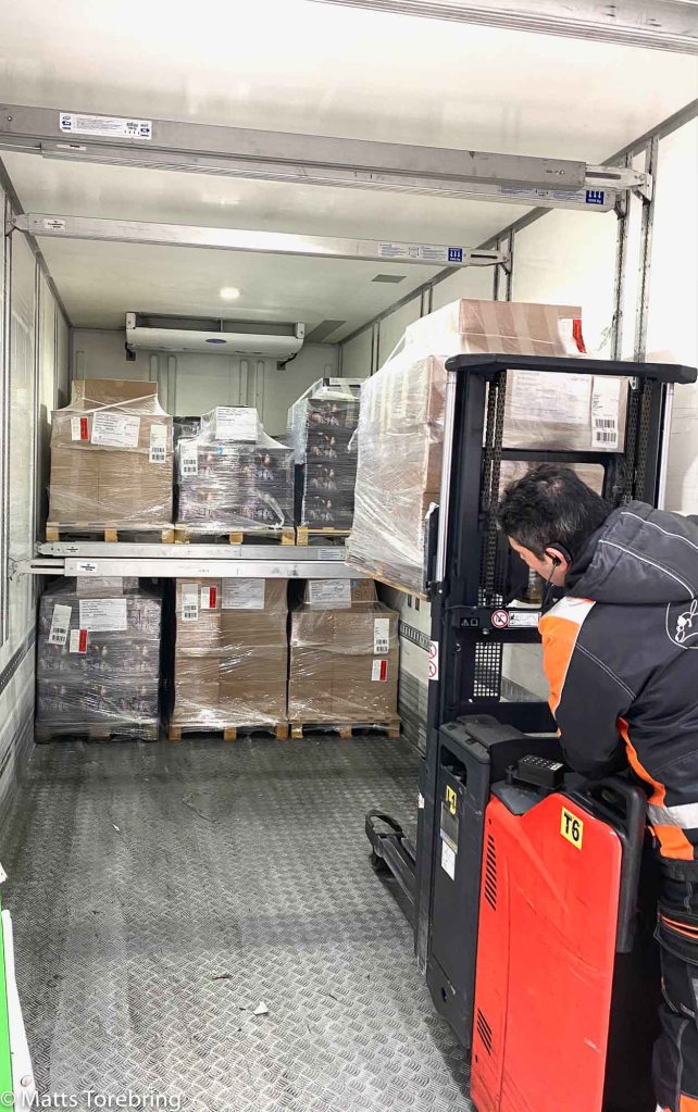 Det långa stora släpet rymmer 36 pallar på golvet. Med de nedfällda balkarna från taket ryms 72 pallar med julklappar från Torebrings. Bring Frigo vet i veckor innan, hur många pallar vi har att leverera varje dag, till olika post nr i hela Sverige.. De kan sedan styra ut vårt gods till allt från Lappträsk till Strandgatan i Stockholm City. Vår son & vd Niklas är ett logistik geni, till att styra upp allt in i minsta detalj. Många kunder vill ändra sina order, ibland i sista minuten, det är inte enkelt i denna transport logistik.