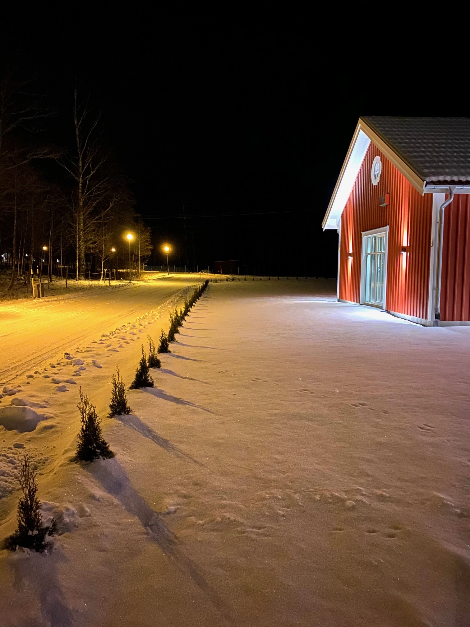 I kyrkan sjunger vi ibland Psalm 302 Min framtidsväg är ljus och lång. Vår gata är inte lång, men den är ljus, inte minst just nu i snön.