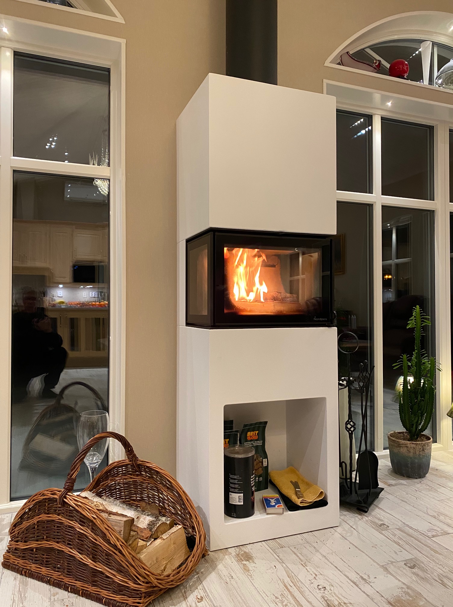 Tur vi har kaminer både uppe och nere som värmer så gott.