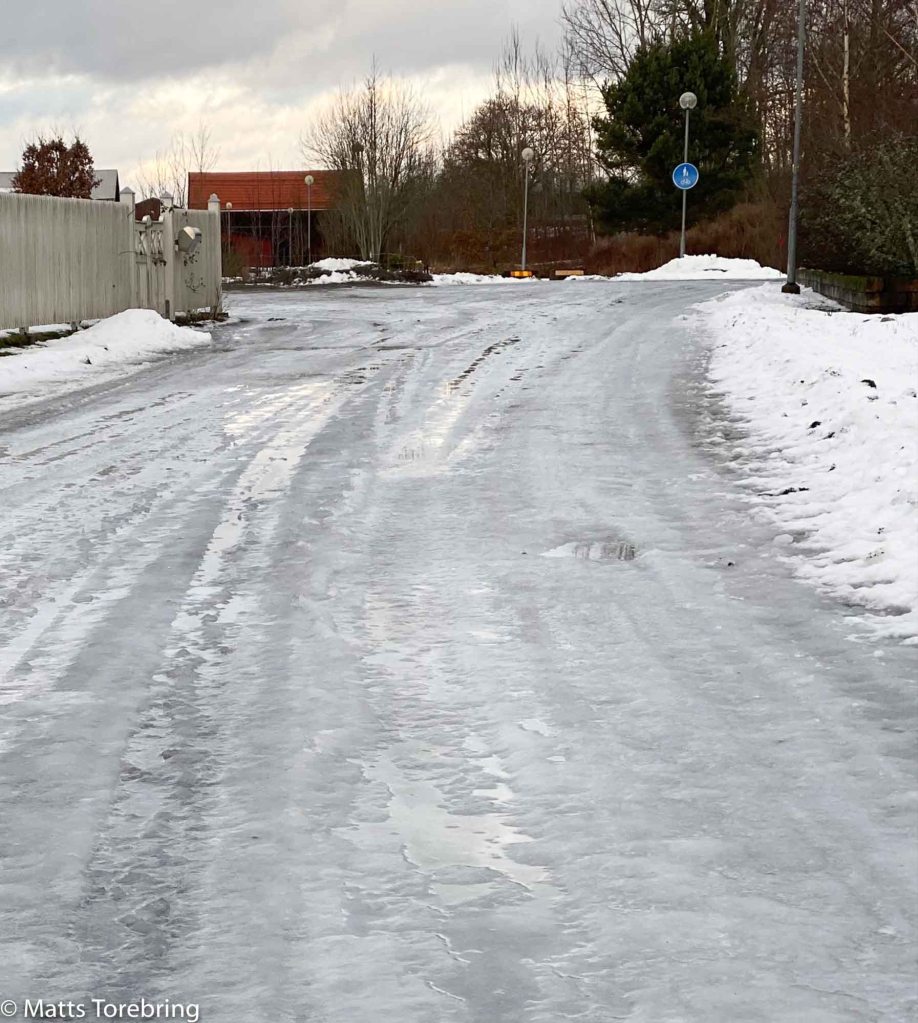 Så här minns jag de tidiga tonåren på landet. Tre km till skolan, ingen skolskjuts, bara att försöka att ta sig fram på isiga småvägar. Men vad tråkigt en dag som denna, jag vet att det finns minst tre uppspolade isplaner i byn, det finns konstsnöspår, allt lämpat för fina vintersportdagar. Men så blir det töväder över en natt. Vad tråkigt för alla glada barn och alla skridsko- & skidentusiaster.