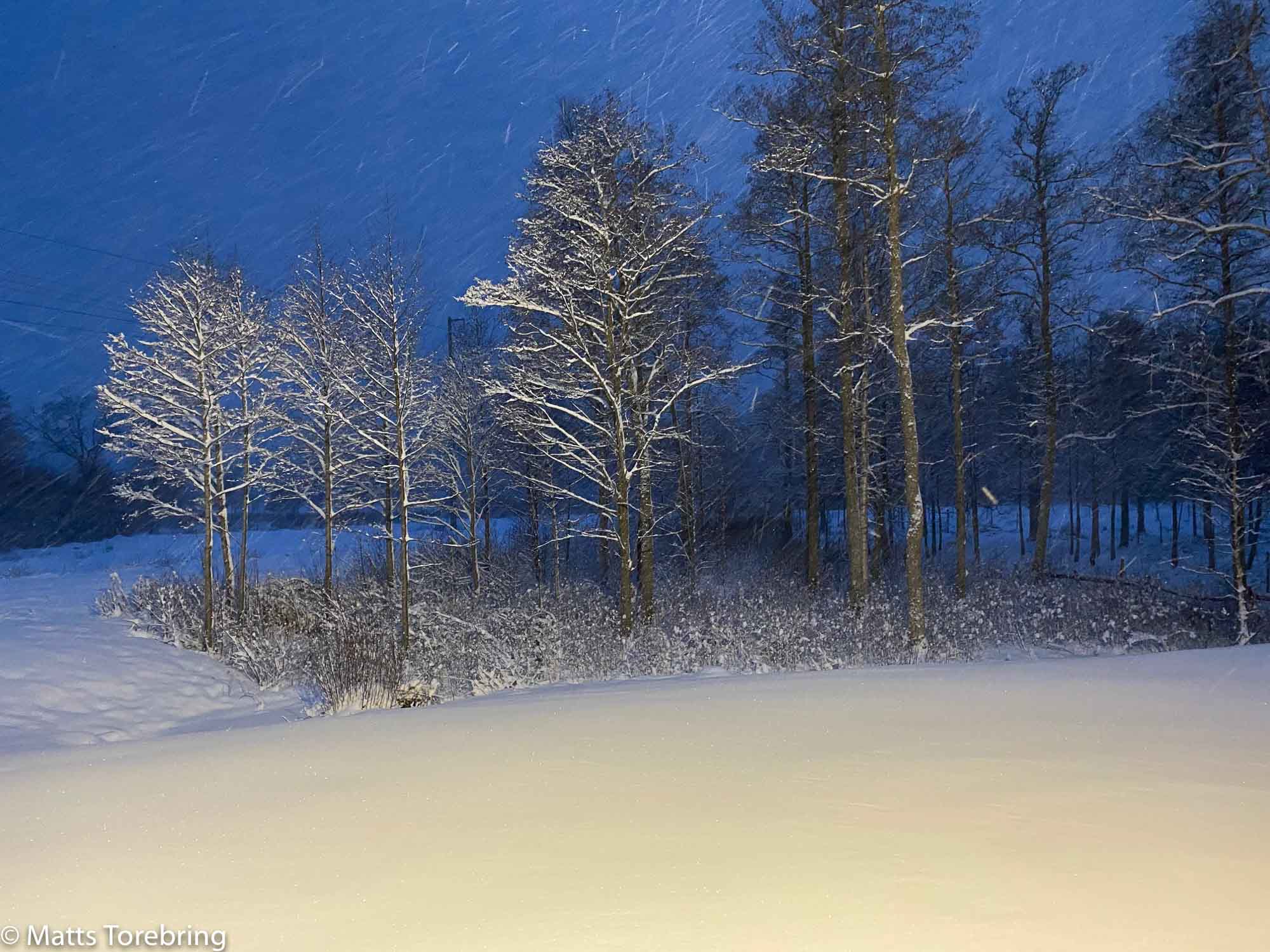 Jag hade tänkt att plocka ned de mindre träden till vänster. Nu när snön kom blev de vackra. Jag tycker att det är fantastiskt, att se naturen ge vad vi förväntar oss efter årstiden. Med andra ord allt är inte ur led. Nu har vi vinter på riktigt och minusgrader de kommande tio dygnen. Men hur har norrlänningarna det längst uppe i nordväst, en meter nysnö och orkanvindar. Det blir för mycket av det goda.