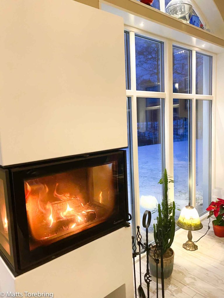 Täljstenskaminen uppe är helt suverän,håller sig varm 7-8 timmar