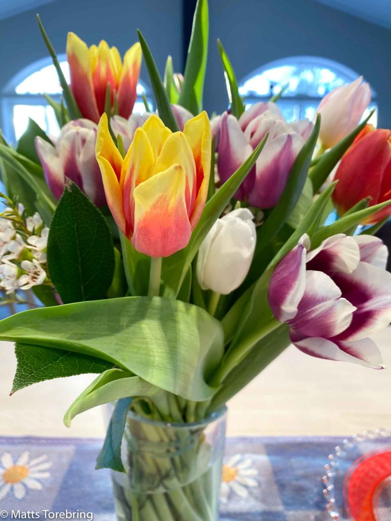 Vi har inte ens fått kallelse till vaccinering än. Våra bästa vänner däremot, har redan fått sina två Covid 19 sprutor, vilket beror på olika omständigheter. Nu börjar de känna sig befriade, efter ett helt år i mer eller mindre karantän. I går kom Janne med blommor till mig, som en värmande uppmuntran, efter min operation. Tack vänner, det värmde gott.