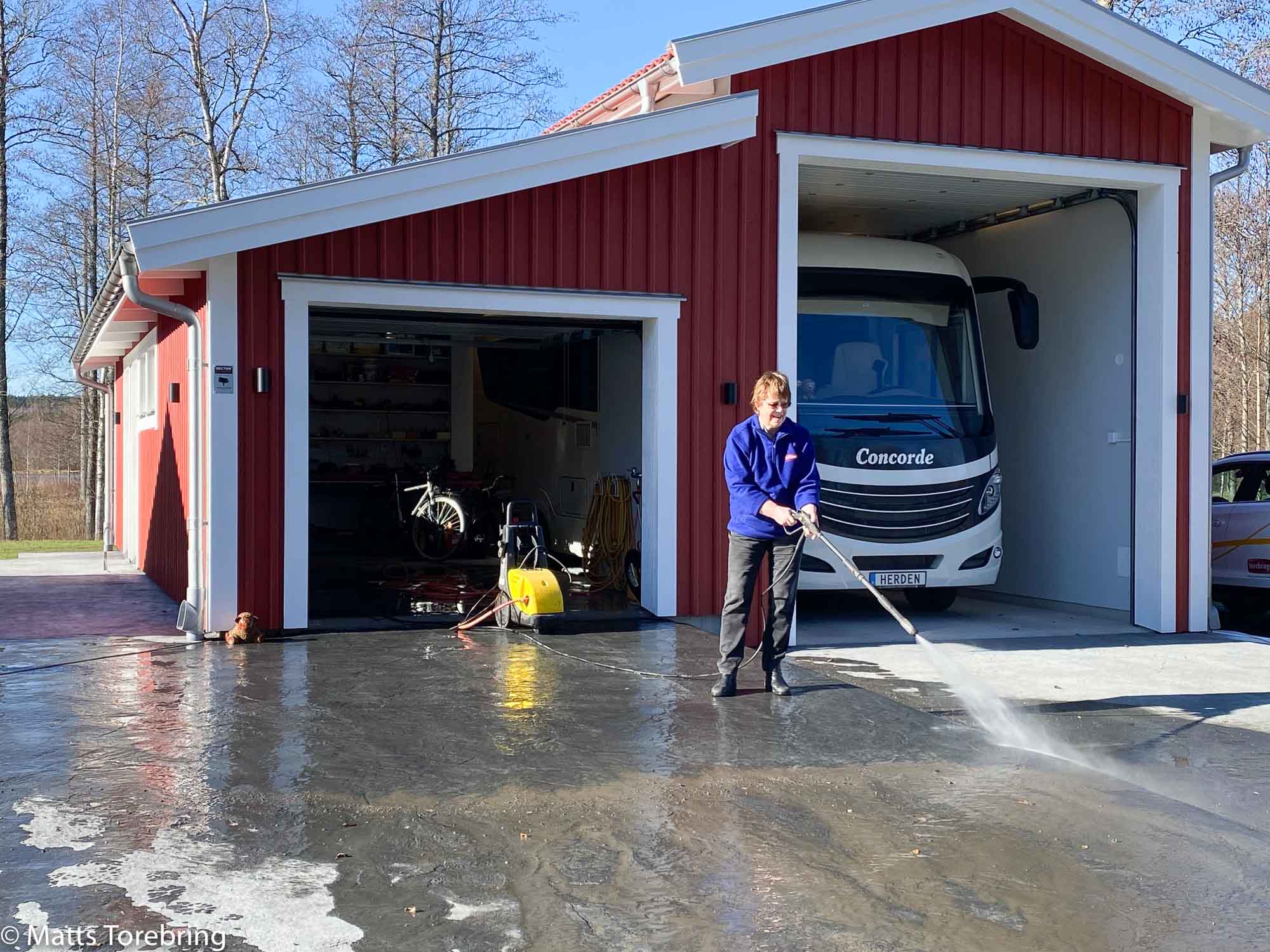 Jag spolar så kan du ta kort sa Birgitta. Innan detta försökte vi få lillbilen ren från alla asfaltsprickar. Sedan Ditecbehandligen i höstas, har den inte blivit tvättad en enda gång. Visst kan jag skylla på att jag blev allvarligt sjuk två gånger och sedan kom kylan. Vi hjälptes åt och nu är den ren och fin igen.