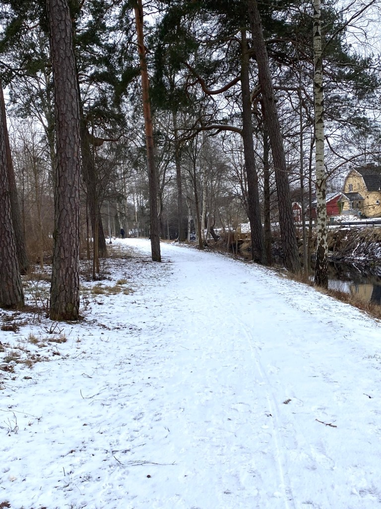 Jag kollar alltid flaggorna på jobbet när det blåser ute. Sedan väljer jag den väg som är minst blåsig, idag gick jag delvis i skogen. Denna veckan har det minsann inte varit ett trevligt promenadväder på mornarna. Jag har helt enkelt fuskat och åkt med Birgitta till jobbet. Idag stod det i SMHI Appen +- 0 men känns som minus 8. Det har blåst kraftigt och vi förväntade oss ganska mycket snö, men den uteblev som väl var. Jag får inte skotta snö än, på fem veckor efter min operation.