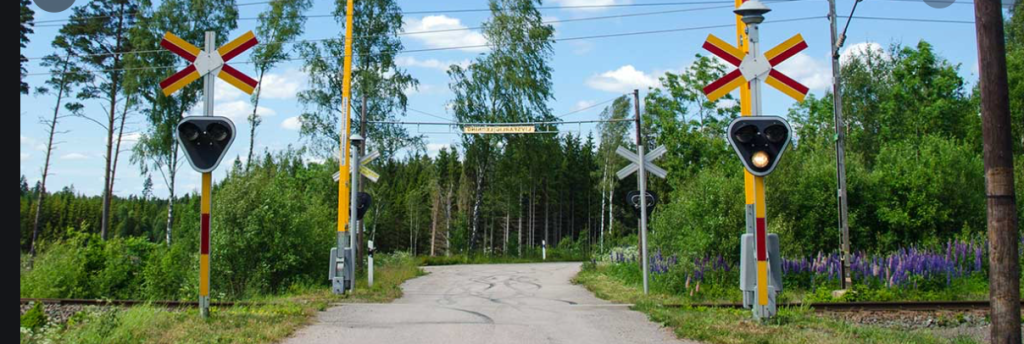 Tänker lika dant vid järnvägsövergång. Här i byn har vi ett järnvägs projekt på gång ska bli två spår och stationen ska flyttas och våra tre överfarter blir stängda och två tunnlar kommer att ersätta dessa. Hus har rivits och det har tagits ner skog och enstaka träd och man gräver och kör undan jord. Nya vägar byggs.
