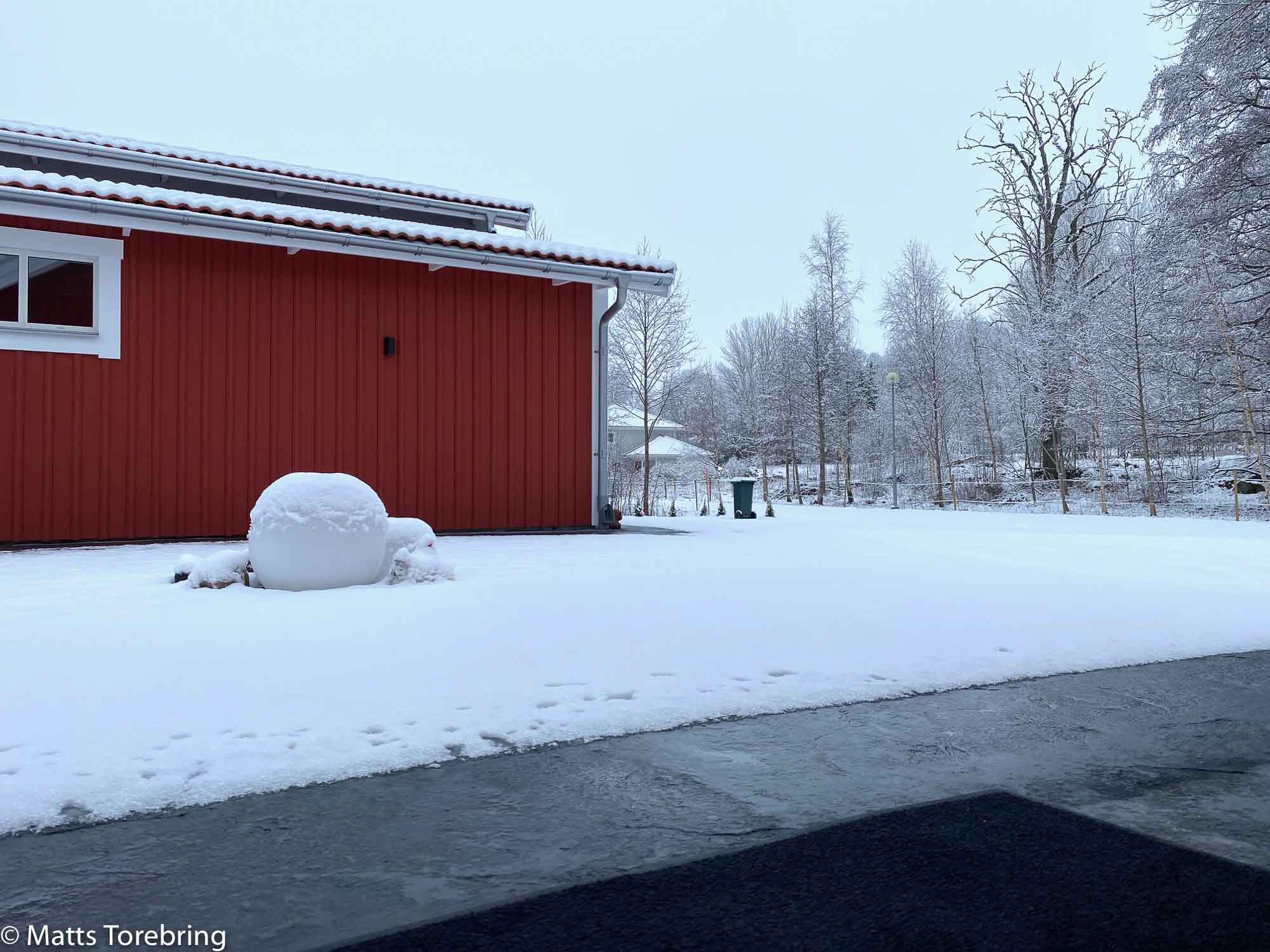 Detta var oväntat vid första anblicken ut idag. Dessutom lite märkligt, barmark en meter runt om husväggarna. Vi gav oss iväg till Eksjö och på vägen dit, var det riktiga snövallar efter plogbilen. Jag har älskat denna vintern, men nu vill jag ha vår, annars är det snart höst igen.