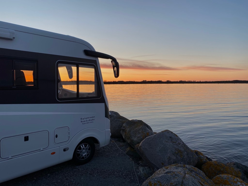 Jag vaknade runt midnatt och frös lite. Visst blir man orolig i dessa tider, efter att ha sett insidan av IVA vården på Aktuellt på kvällen innan. Tänk om jag är sjuk, tjugo fem mil från hemma? Jag gick upp och kollade värmen i bussen. Den visade +21, jag är van vid +23- +24 grader hemma. Ute var det + 2 och pannan stod på 2 kw. Där går gränsen för bara el. Jag startade gasolen också, vips var det varmt och jag somnade gott igen.