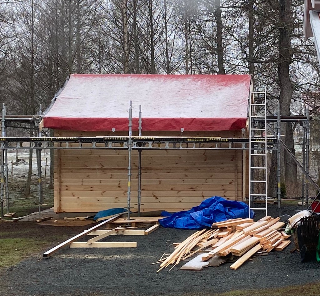 Jag räknade med två man i två dagar, för att resa upp detta Attefallshus, samt ett par timmars ytterligare småjobb, men vad hände? Inget fel på jobbet, men vilken tid det tog!