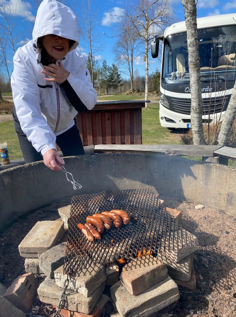 Korvarna kändes gudomligt goda där ute i snålblåsten, de inte bara värmde i munnen, de var så heta så de brände. Efter tre korvar blev det mer än en timmas sömn. Skogen, röken från grillen, solens strålar och tystnaden, nu kan du sova Matts, sa Herden, och det gjorde jag mitt på blanka fredagseftermiddagen..