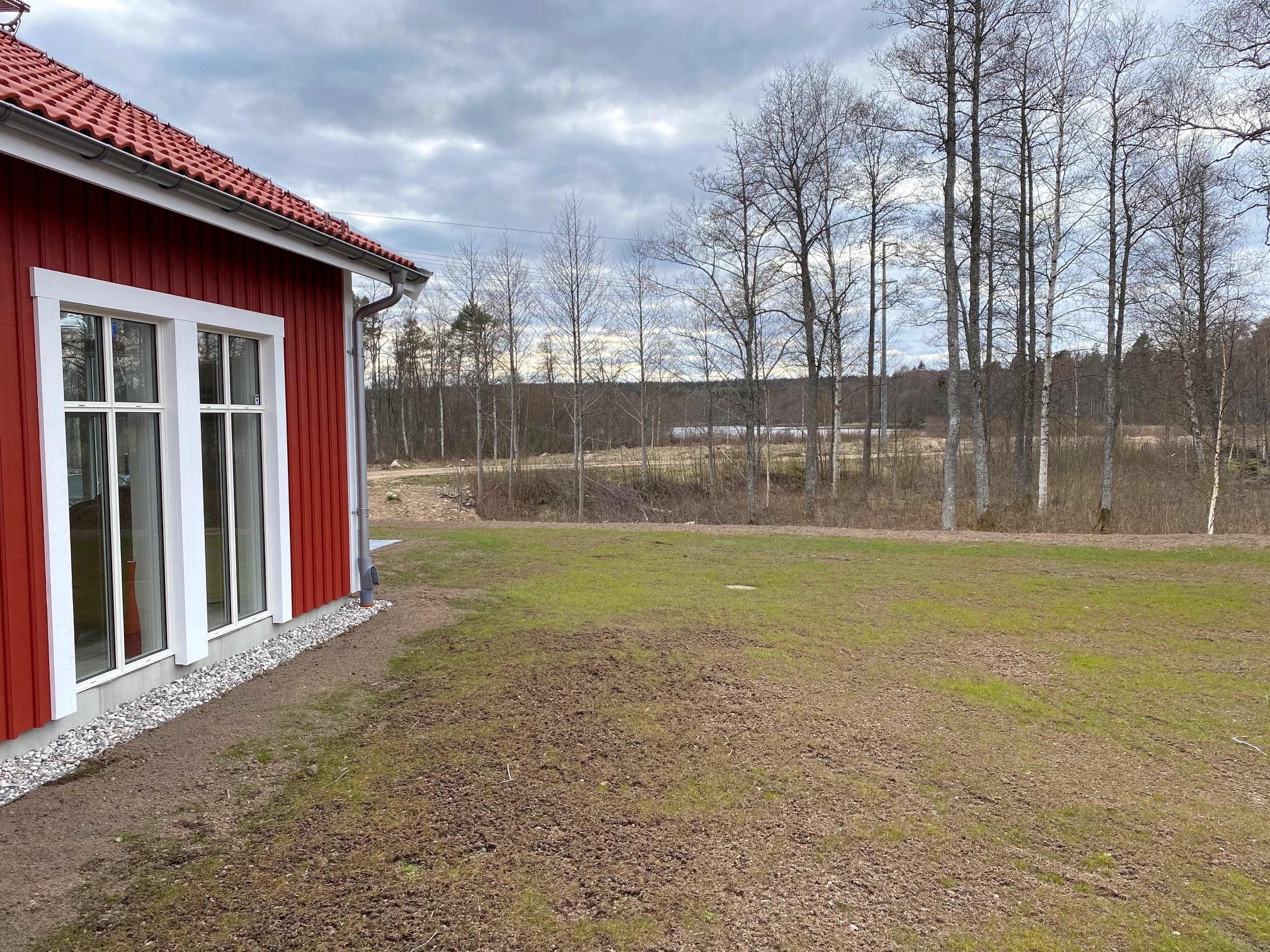 Jag hade lite bråttom med att få upp vårt Attefalls Hus, för att jag skulle kunna planera klart, till dess att Toreman skall börja sitt jobb. Jag har väntat i snart en månad på växter, troligtvis får jag inga på grund av stor efterfrågan i år, det verkar slutsålt överallt. Jag hade hoppats att ha det klart, innan vi lägger begränsningslinan.