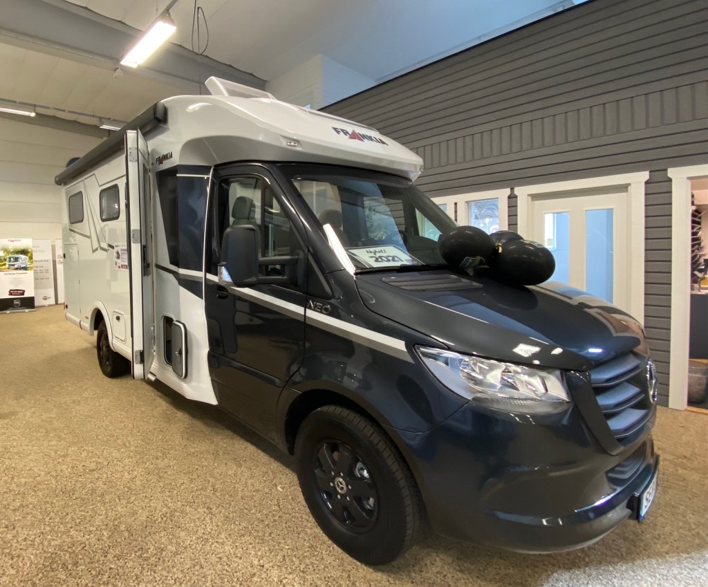 Vi var inbokade för fukttest hos Forsberg i Hyssna. När vi väntade på att få klart, gick vi runt bland husbilarna. Vi tittade runt i flera mindre husbilar och imponerades av många olika planlösningar i den lägre prisklassen. Ge akt på tjockleken på dörren på denna och nästan tyst att stänga. Det var kul att få en lång pratstund med en säljare, som hade lång erfarenhet av olika märken. Naturligtvis frågade jag hur många plåtbilar han säljer? Inte en enda, jag talar om svagheterna och då säljer jag ingen. Själva är vi stolta över vår bil som är rymlig och som tar så liten plats.