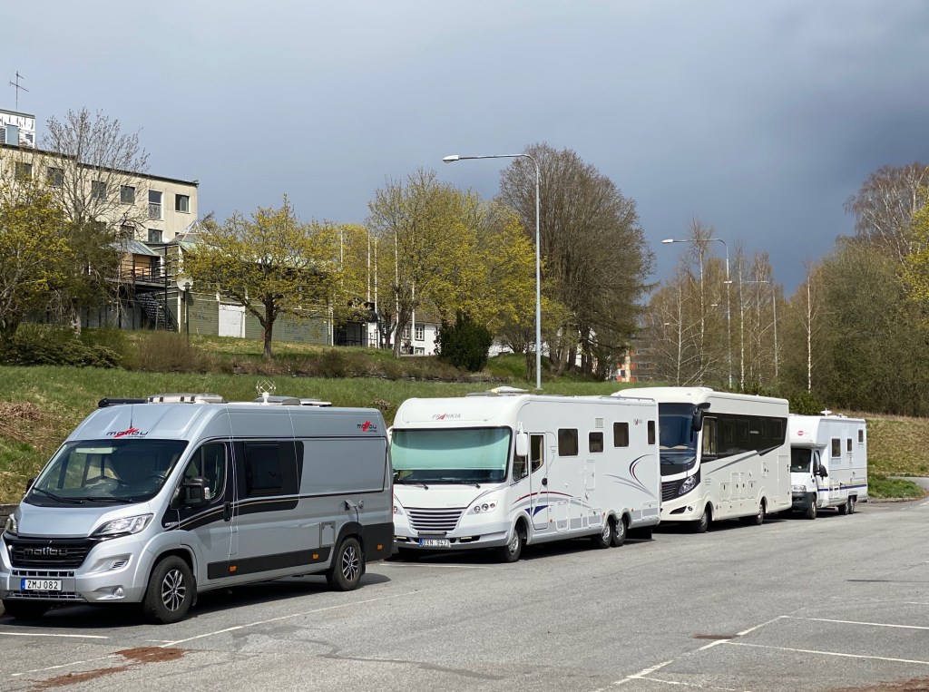 När vi kom hit vid halv åtta tiden i går kväll var det fullsatt. Vi sov utanför Forsbergs, men trafiken alldeles intill är värre är på autobahn. Idag på förmiddagen fick vi plats. El, vatten, tanktömning, en återvinningscentral intill och allt gratis. Fantastiskt. Klart det är roligt att åka hit.