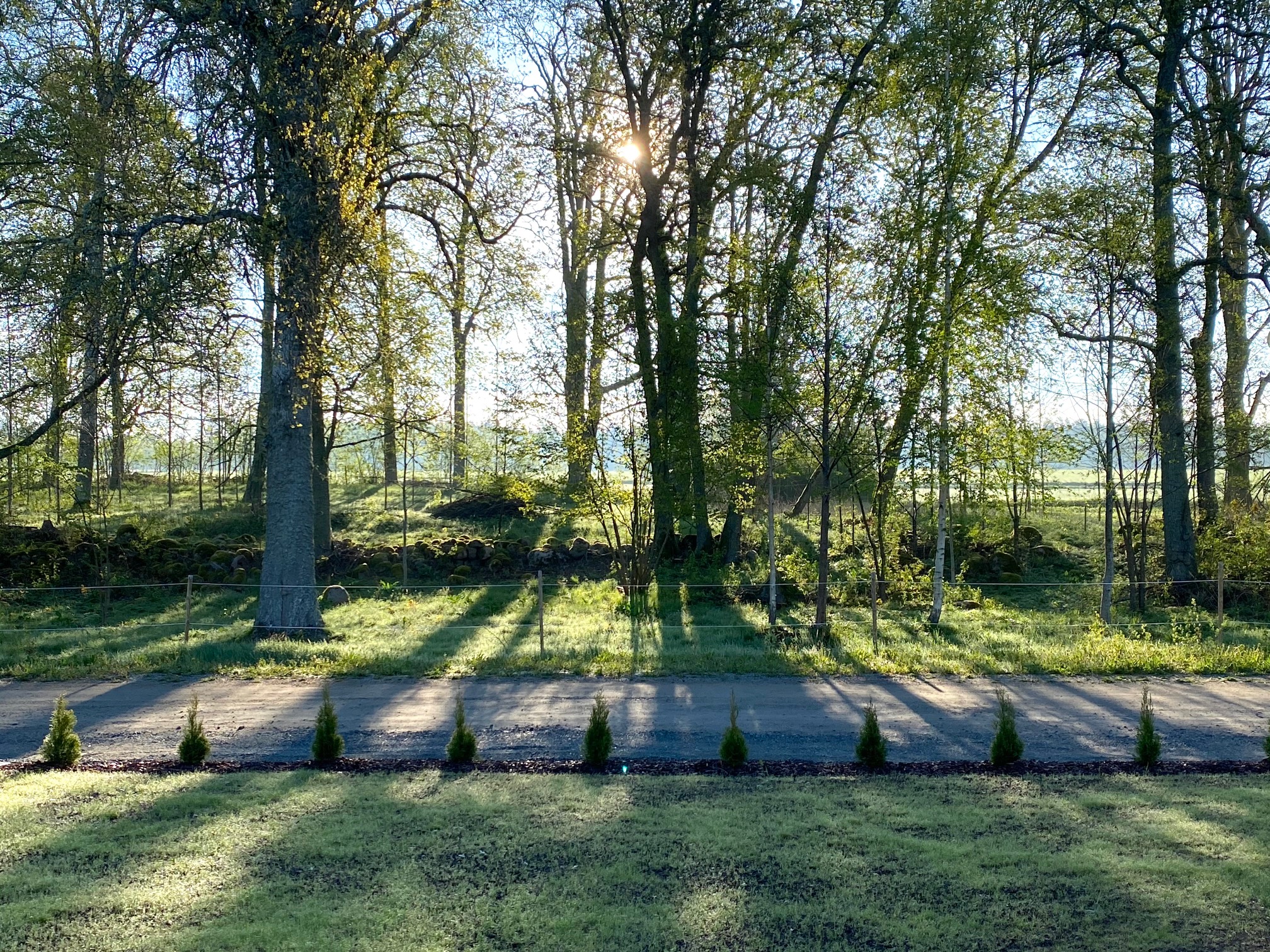 Varje vårdag är ny här för oss här på Framtidsvägen, det är första våren vi bor här, varje dag är ett nytt möte med grönskan och ett brus av fågelsång, det är helt fantastiskt. Att bara öppna ytterdörren och möta allt detta är helt makalöst. Jag minns att jag skrev det förra våren, ett sådant brus av fågelsång, har jag aldrig mött tidigare, samma i år. Nu har vi grönskan och alla fåglar att glädja oss åt. Första juni firar vi ett år sedan vi flyttade in.