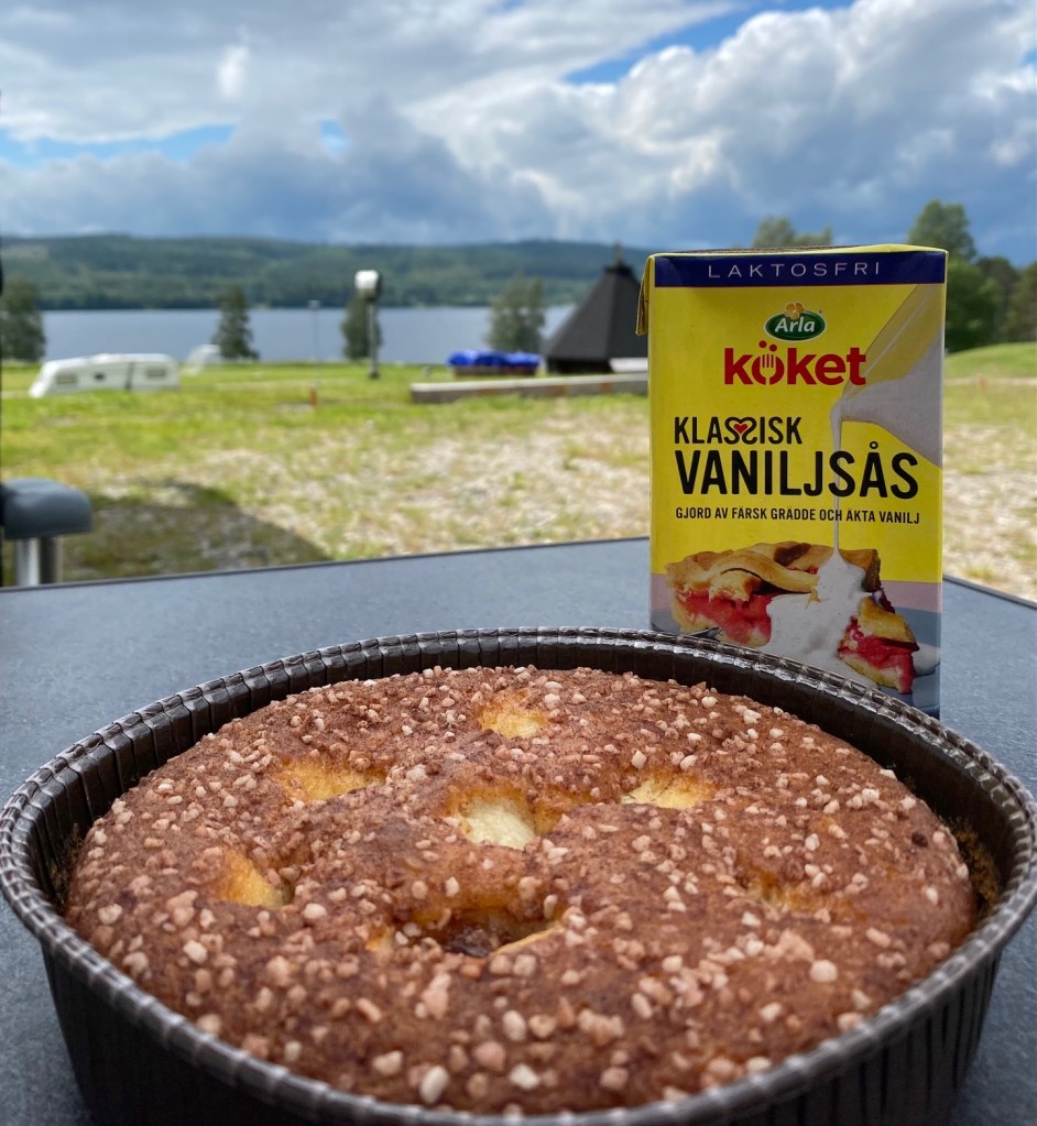I går gick vi till Tempo i byn och handlade, idag blev det cyklarna. Så makalöst god äppelkaka, godare än det mesta i bakväg, med vaniljsås till, smakade det jättegott efter knappt en mil på cykeln.