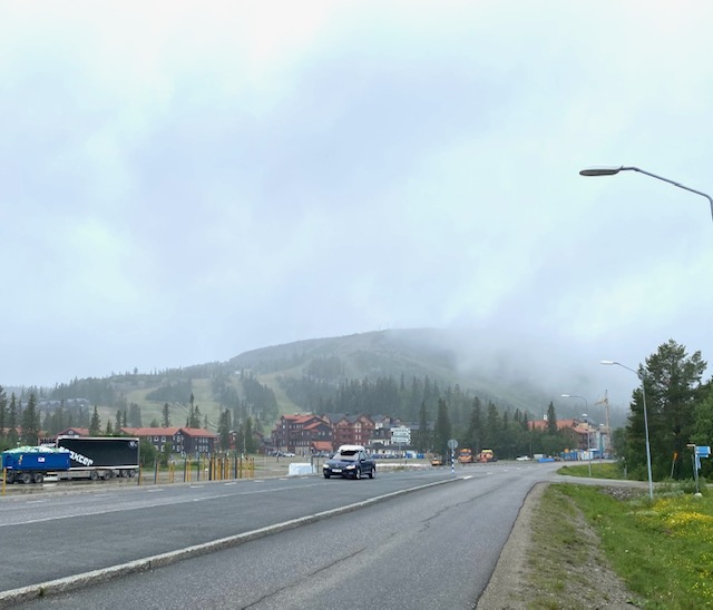 Vi hade bara 15 km från Klövsjö Golfklubb till Vemdalsskalet. När vi kom dit på förmiddagen, var hela luften fylld av något grått dis eller rättare sagt regn.