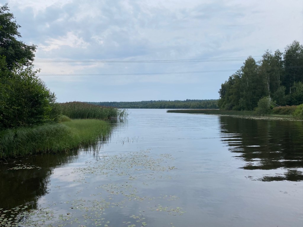 I kväll är det mörka moln som kommer upp på himlen. Först lovade SMHI 17 mm regn i Aneby i morgon, nu har de sänkt prognosen till 6 mm. Yr.no lovar närmare 50 mm. Hoppas på det senare, men inte allt på en gång. Bilden visar norra delen av Anebysjön. Utloppet har jag en meter bakom mig.