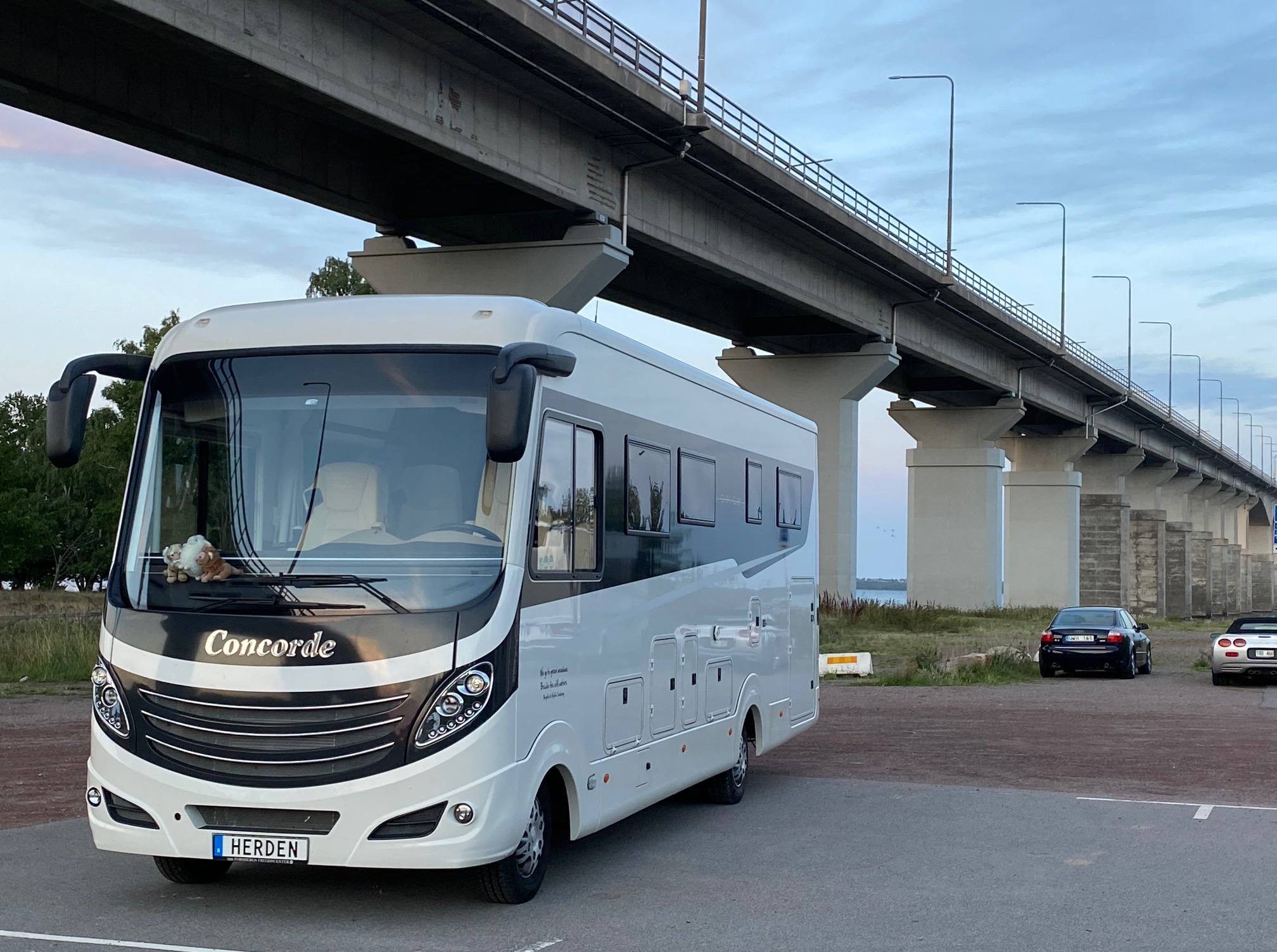 Skönt att ha två förare så byte kan ske. Nu får vi se vem som rattar HERDEN över bron.