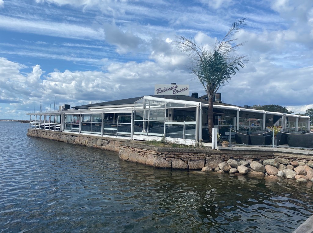 När vi gick upp till stan och gick förbi Restaurang Robinsin Crusoe läste vi på trottoarprataren att det serverades buffé fram till kl. 15. Restaurangen är verkligen mysig, men skulle vi våga att äta buffé i coronatid?