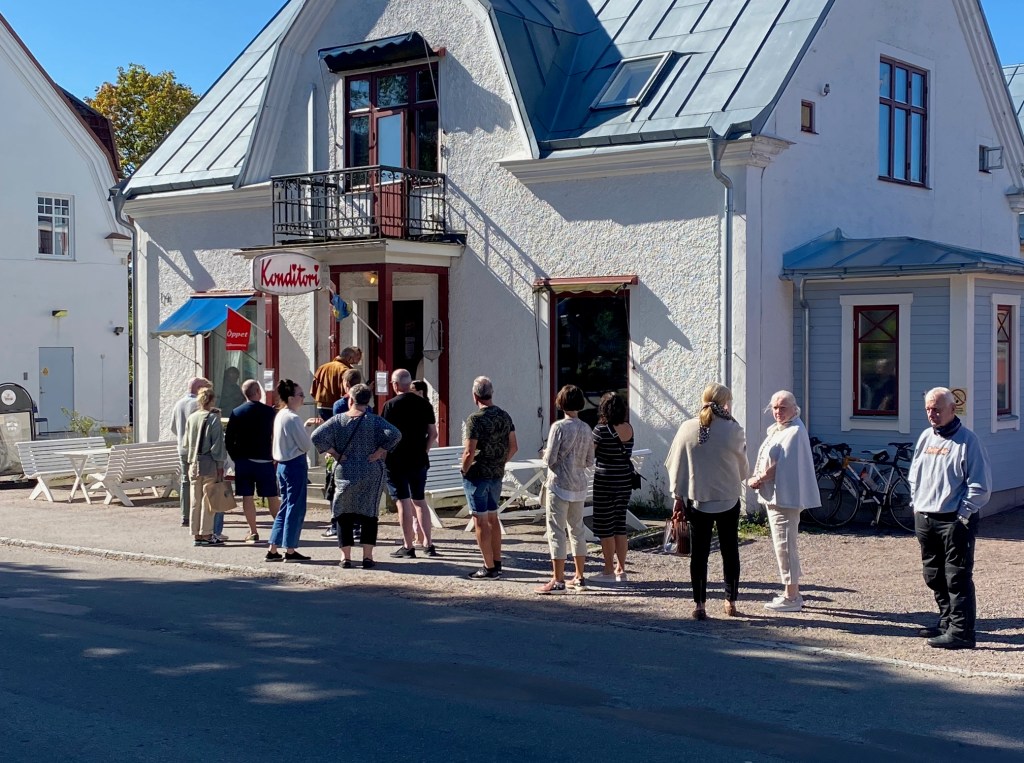 Lång kö ut på gatan under hela dagen till Konditoriet.