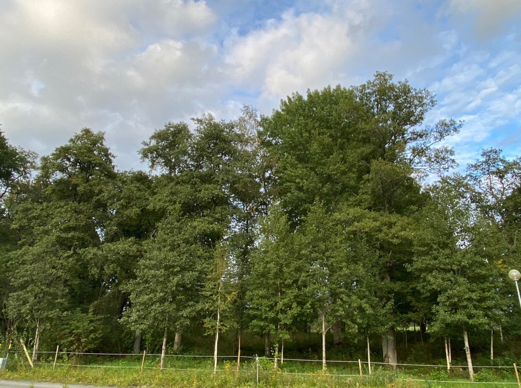 I helgen som var blev jag så förvånad, när jag tittade in i hagarna utmed vägen, det fanns guldfärgade aspar och gula björkar. Detta har jag inte sett hemikring än. På vår gata är träden kolgröna än. Bara en björk nedan som har lite gula kvistar.