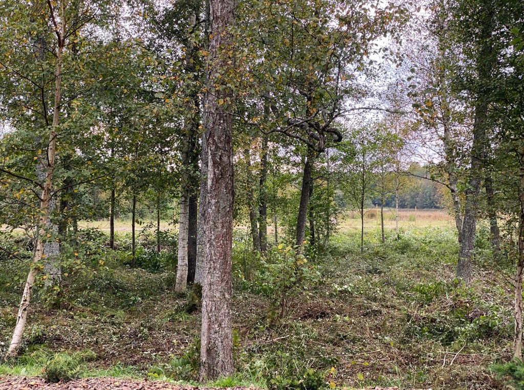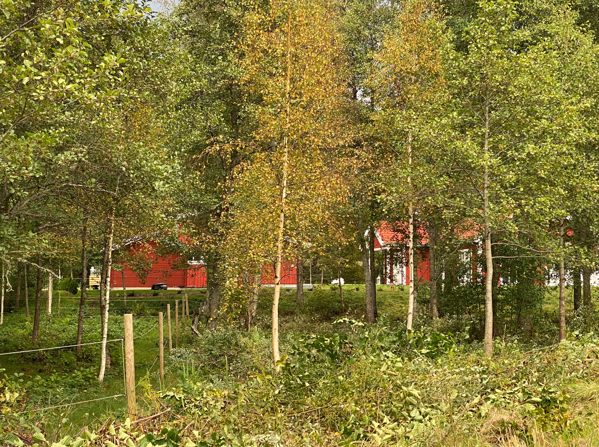Nu ska jag ta min motorsåg och gallra lite bland de minsta träden som står kvar. Vår granne till vänster om stängslet, har hästar som håller efter all vegetation och de har så enormt grönt och fint.