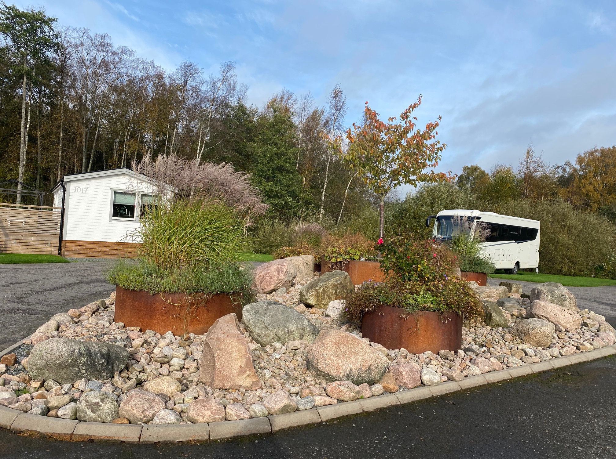 Jag är helt lugn när Birgitta kör och vi älskar att komma till Lidköping. Vi håller oss fortsatt unga med lite resor med bussen. Nu ställer jag mig frågan, kan jag anlägga detta praktfulla stenröse och plantering hemma?