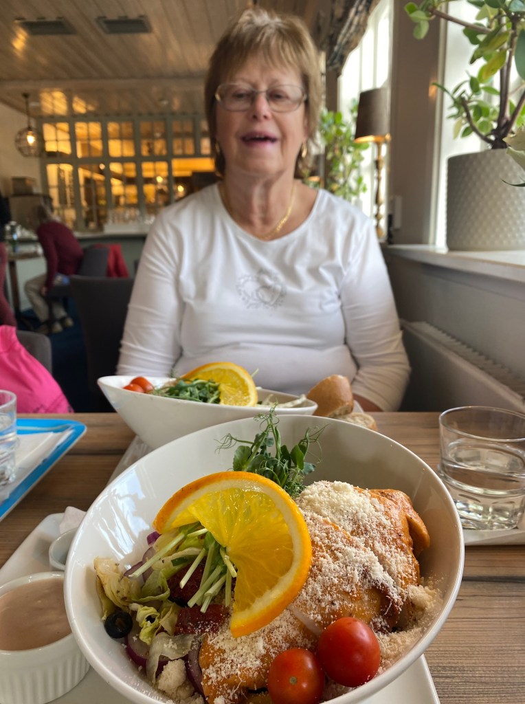 Vi gick intill stan, tur och retur och det var allt jag klarade. Stärkt av denna goda mat ”gick” det bra.