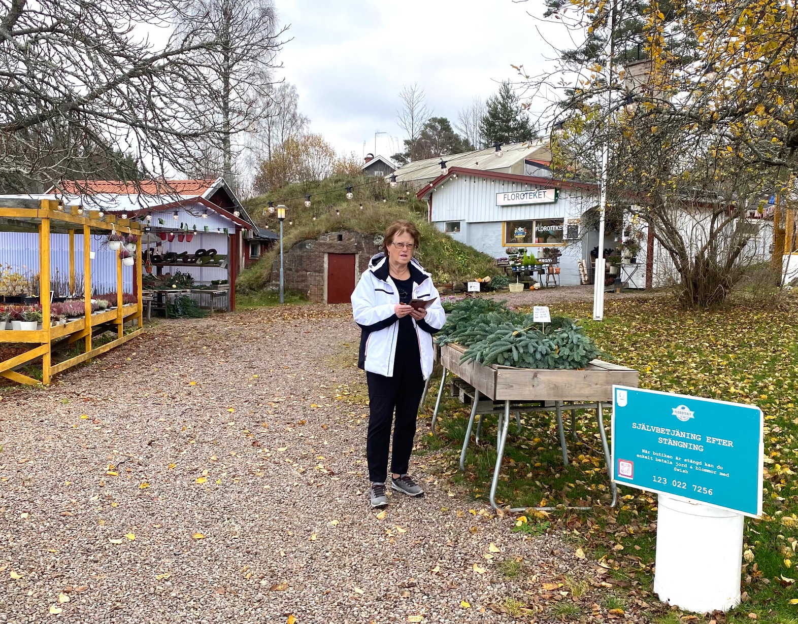 Vi åker dit helt oberoende av klockan så snart vi behöver något. Denna gången var det söndagsöppet men vi klarade oss själva och reste hem med bra gravlyktor och gravdekorationer.