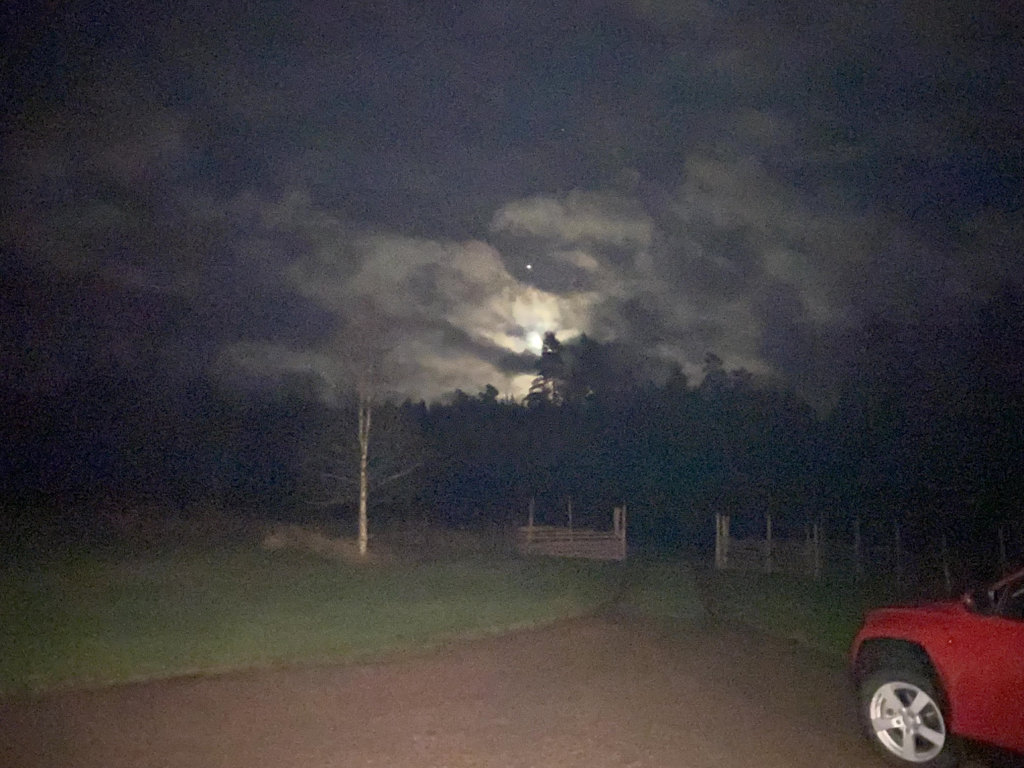 I afton gav vi oss iväg på små grusvägar för att besöka vänner i kyrkan och hittade fram klockrent tack vara min iPhone. Månen lyste upp de mörka skogarna och inget regn så det var inte svårt att hitta fram.