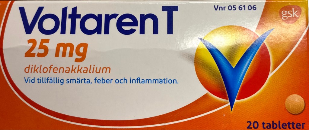 Måste man köra ut i skogen och ”Voltarunt” med bilen för att få hjälp. Det är ju mycket billigare att kunna ta en ”Voltaren.” Jag vet att dessa värktabletter som motverkar inflammation inte riskfria, men man kan ju gå ihjäl av värk också. I går sa jag till på skarpen, värktabletter eller så byter jag läkare och vårdcentral. Efter ett par timmar kunde jag hämta ut mitt recept på Diklofenak.