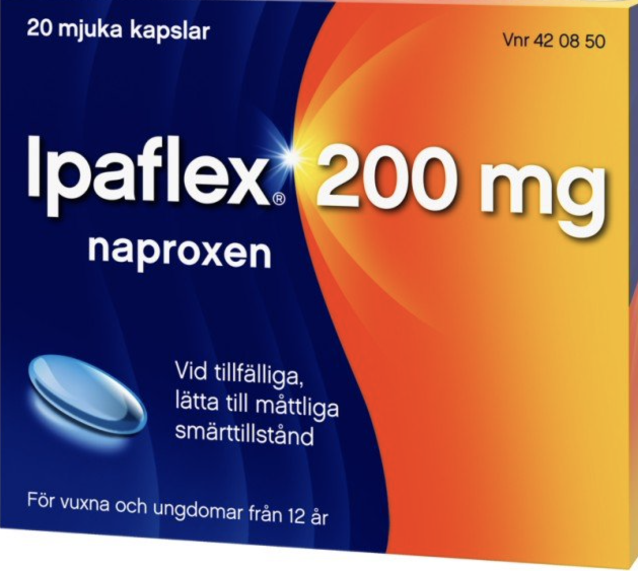 Nu hoppas jag att denna långa och tråkiga följetång är över, samtidigt som jag kanske delat med mig goda råd till någon annan medvandrare. Jag gick till Apoteket i byn och köpte dessa receptfria tabletter på inrådan av min Fysioterapeut. Denna tabletten är mycket snällare än Diklofenak, sa han. Jag tog två tabletter i går som startdosering och efter 12 timmar idag tog jag en tablett till. Vad hände sedan idag, jo jag kunde röra mig normalt igen och jag sprang till och med uppför trappan från lagret och det gör inte ont längre när jag reser mig från kontorsstolen. FANTASTISKT, efter bara tre tabletter. Jag fick rådet att trots detta fortsätta mitt träningsprogram.