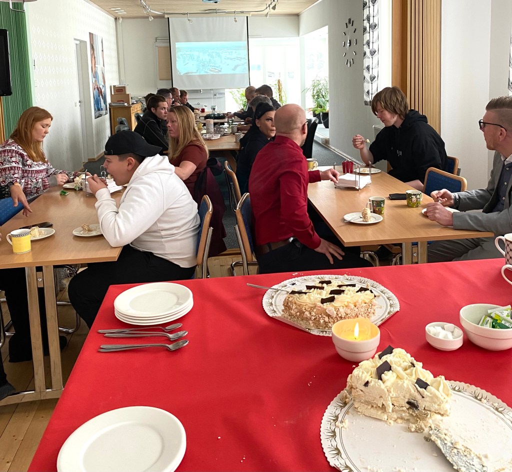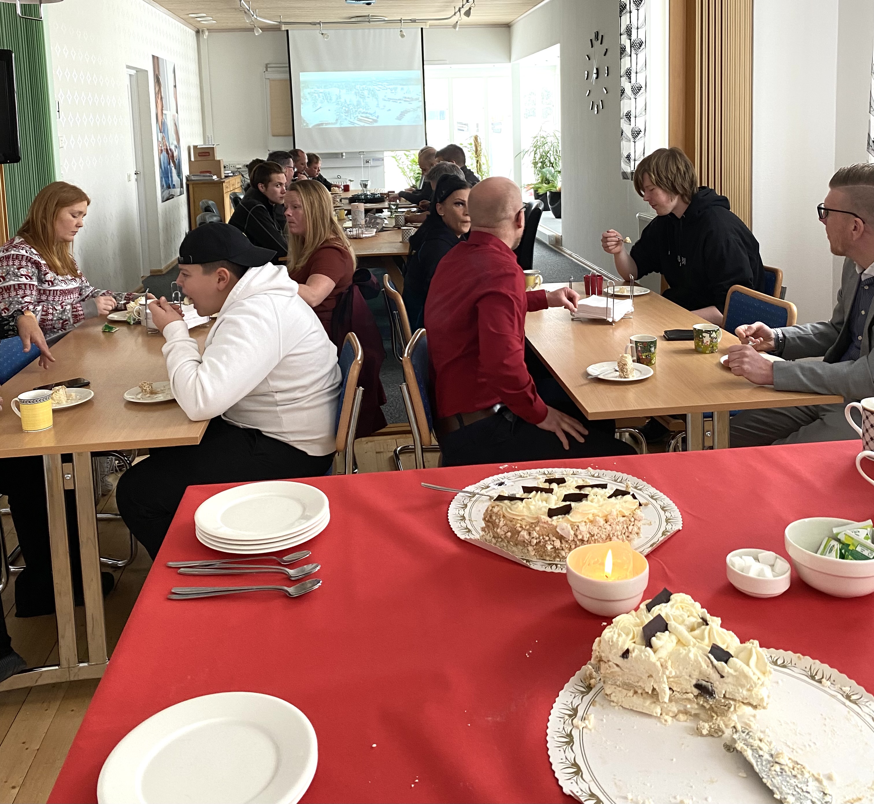 Två tårtor á 15 personer är nästan slut.