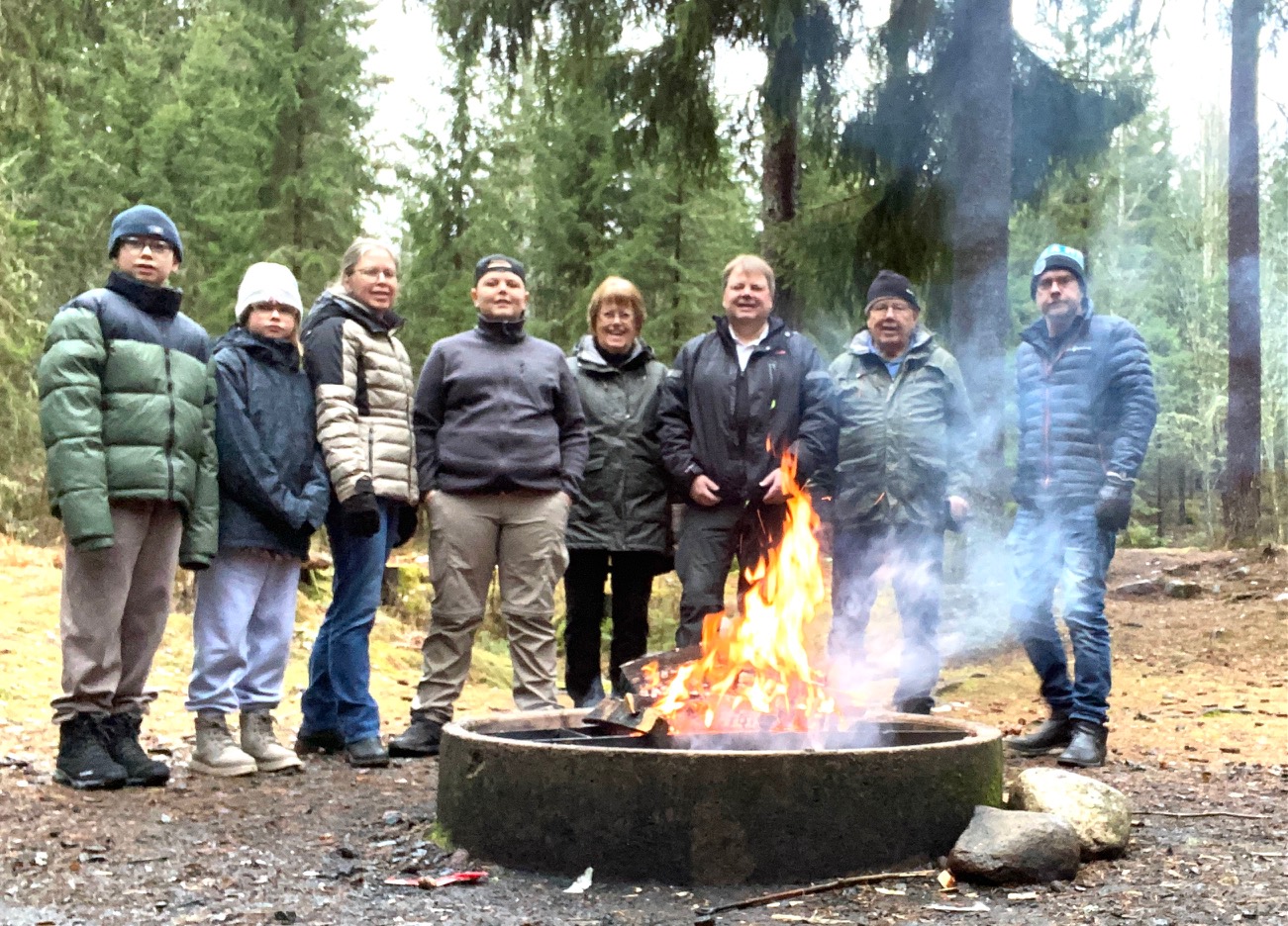 Vad trevligt att få avsluta med grillning i snöfria skogen!