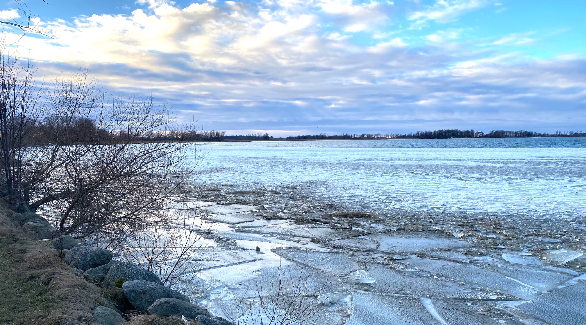 Mängder av is har drivit i land. Utanför isranden låg ett stort antal svanar på förmiddagen, jag försökte räkna dem och kom till 35- 40 stycken.