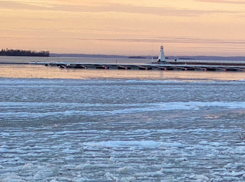 Många av er är nog inte vana vid att se Vadstena delvis belagt av drivis.