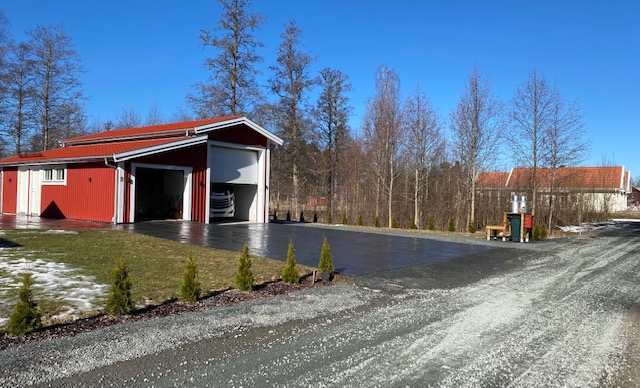 Denna gången var både garagegolv och garageinfart maximalt smutsiga, efter sista tidens leriga byväg. Nu har byvägen ”sladdats” till och även fått ett lass eller två med fint grus.