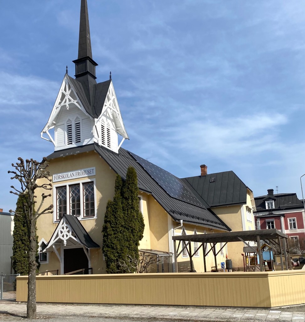 Så många gånger som har vi gått Köpmansgatan från Södra Storgatan till ICA, för att som oftast köpa lite gott i Fiskbutiken. På denna gata ligger hela 3 st före detta frikyrkor. Kyrkorna har växt ur sina lokaler och finns på andra platser i stan. Förskola Fröhuset måste vara lite speciell i sitt slag.